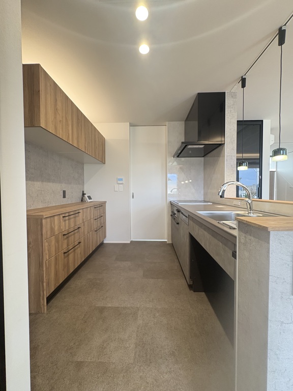 ホテルのように洗練されたグレイッシュトーンと、木の温もりが調和した心地よい住まいです。