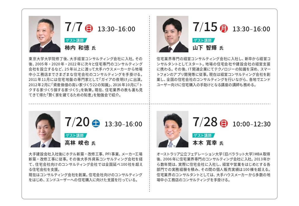 住宅の専門家として「良い住宅会社の選び方」を中立的な立場で解説するゲスト講師と、