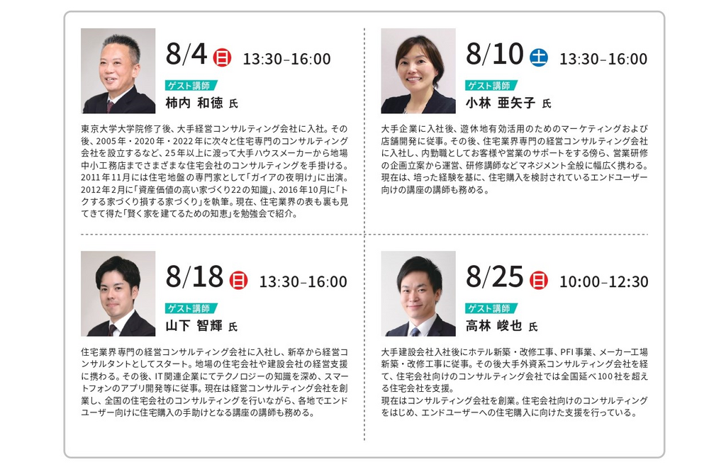 住宅の専門家として「良い住宅会社の選び方」を中立的な立場で解説するゲスト講師と、