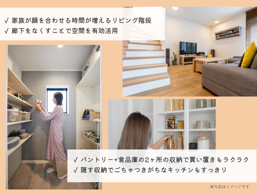 そこで、パントリーと食品庫の2ヶ所の収納で