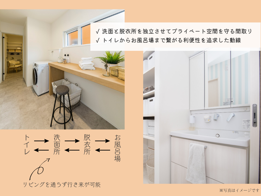 さらに!お風呂⇔脱衣室⇔洗面所⇔トイレをリビングを通らずとも行き来が可能!