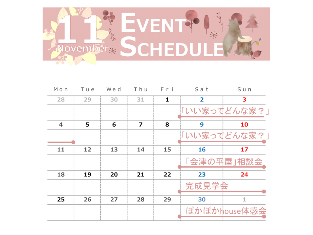| タイトル | 【アイフルホーム会津店】11月のイベントカレンダー! |