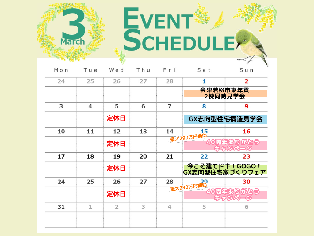 | タイトル | 【アイフルホーム会津店】3月のイベントカレンダー! |