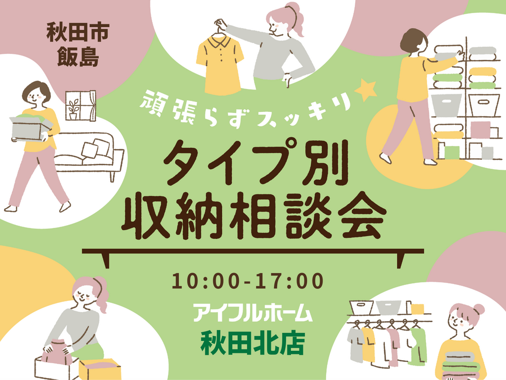 | タイトル | 【秋田北店】頑張らずスッキリ!タイプ別・収納相談会 |