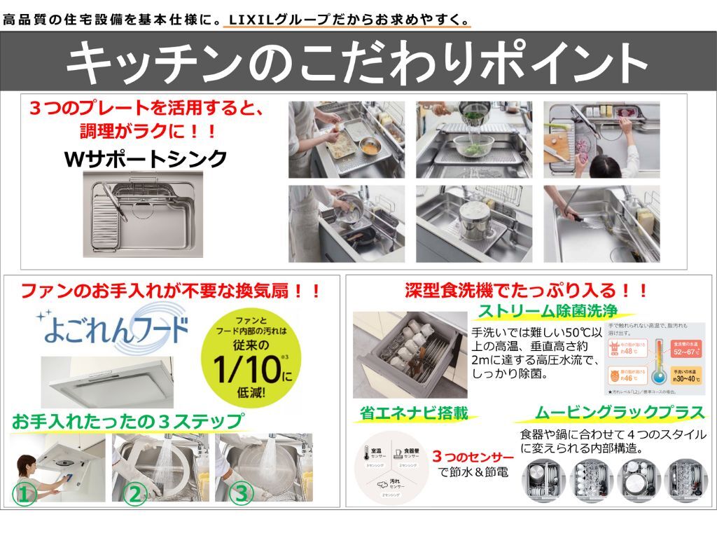 リビング・ダイニングにいる家族と会話を楽しみながらお料理ができる開放的な対面キッチン。