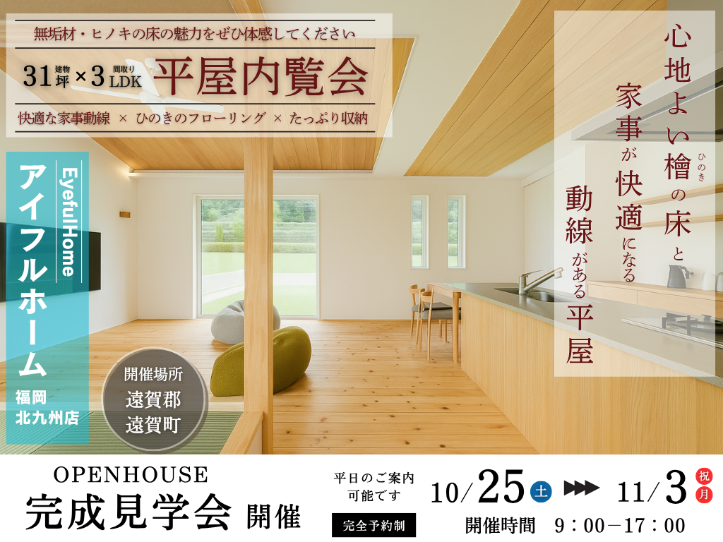 ◆平屋の完成見学会◆遠賀町・完成見学会のお知らせ