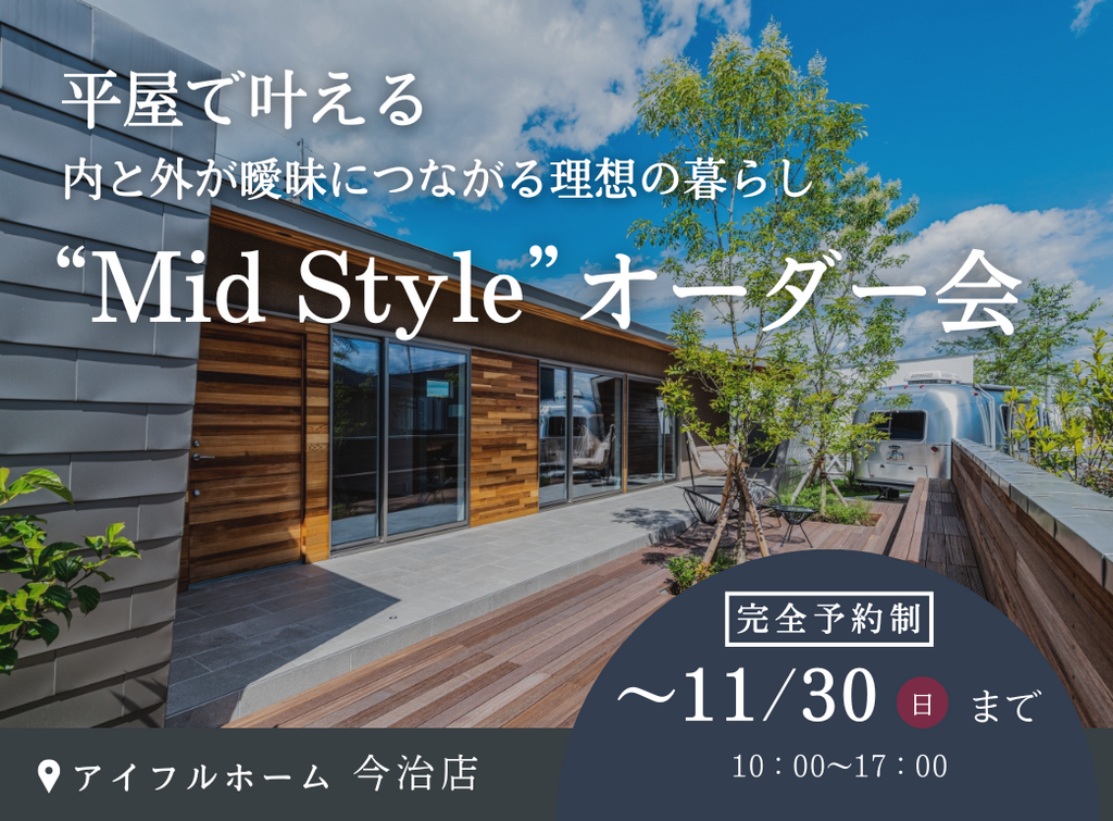 | タイトル | 平屋で叶える内と外が曖昧につながる理想の暮らし“Mid Style”オーダー会 |