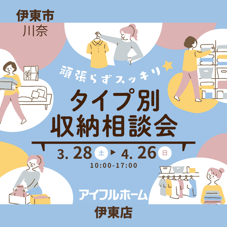 | タイトル | 【伊東店】頑張らずスッキリ!タイプ別・収納相談会 |