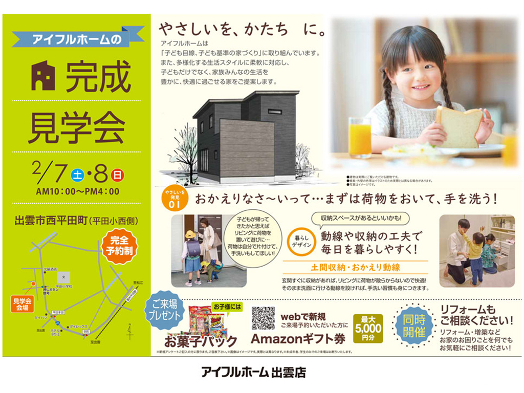 2/7.8【出雲市西平田町】アイフルホームの完成見学会 (住み心地体感・収納)
