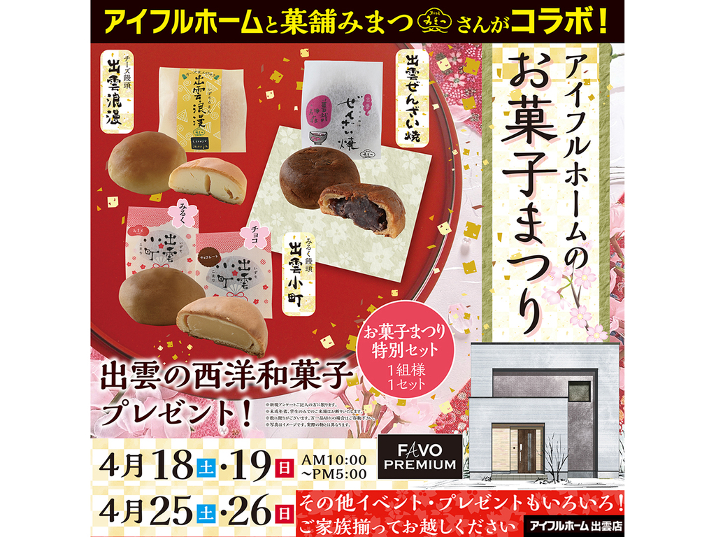 4/18.19・25.26【出雲店】アイフルホームのお菓子まつり(住み心地体感)