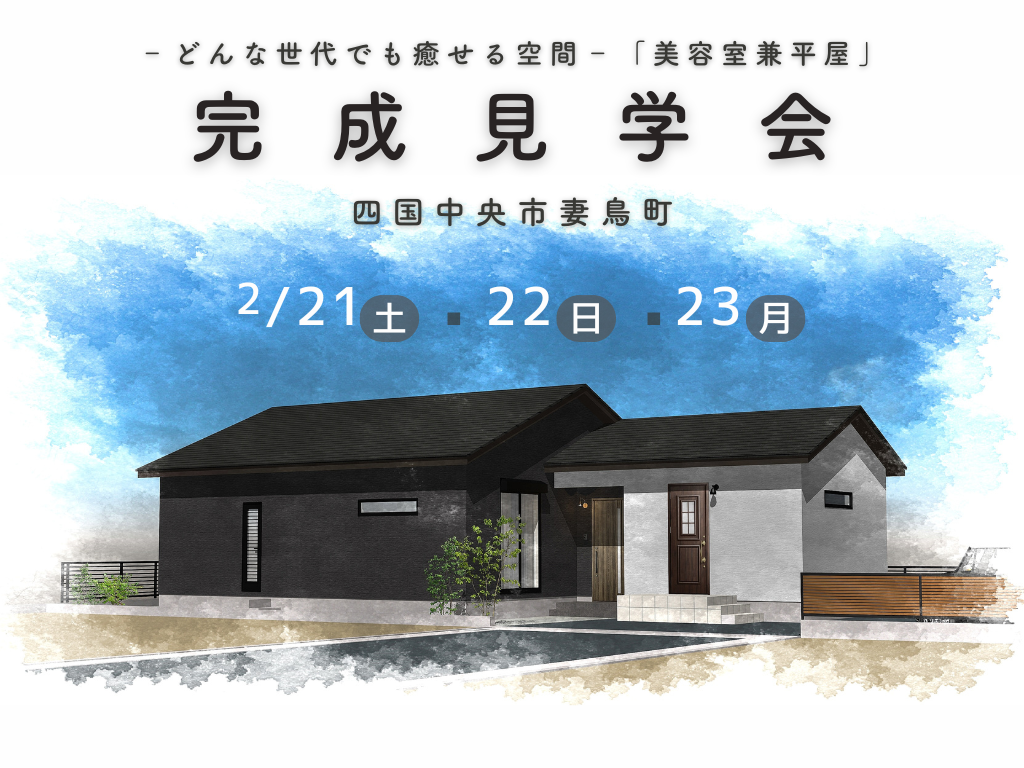 | タイトル | <四国中央市>【2/21-23】「どんな世代でも癒せる美容室兼平屋」完成見学会 |