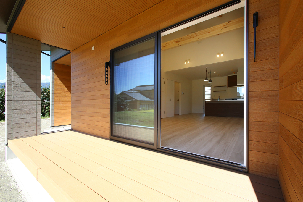 リビングの外にウッドデッキが設置されることで、リビングの広さがウッドデッキ分広がったように感じさせることができます。
