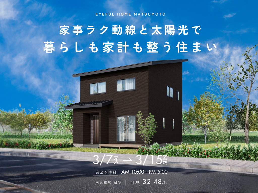 | タイトル | 【南箕輪村会場】家事ラク動線と太陽光で 暮らしも家計も整う住まい《完成見学会》 |