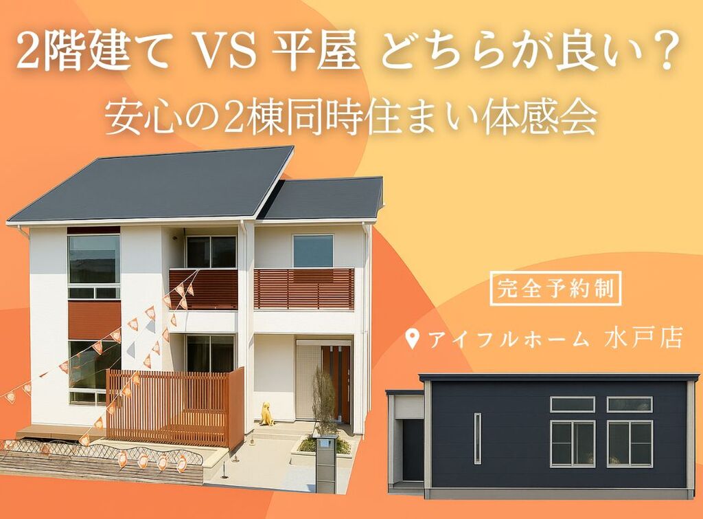 【水戸店】2階建て vs 平屋 どちらが良い?安心の2棟同時住み心地体感会