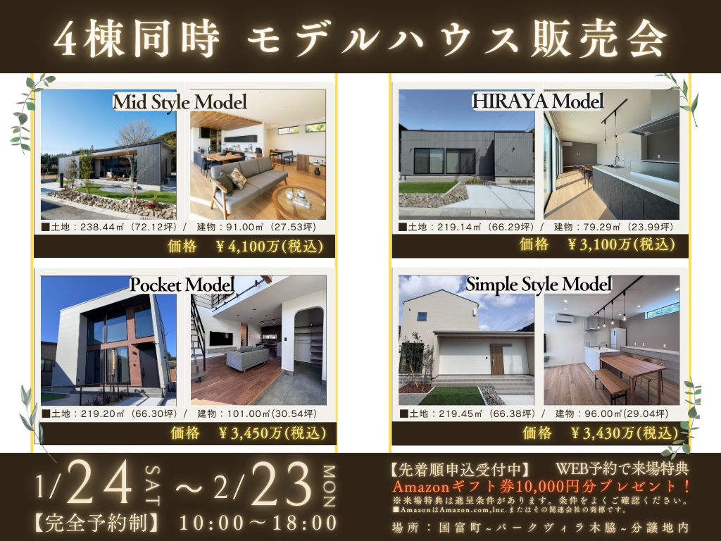 1月24日(土)~2月23日(月・祝)の期間、4棟同時 モデルハウス販売会を開催します!