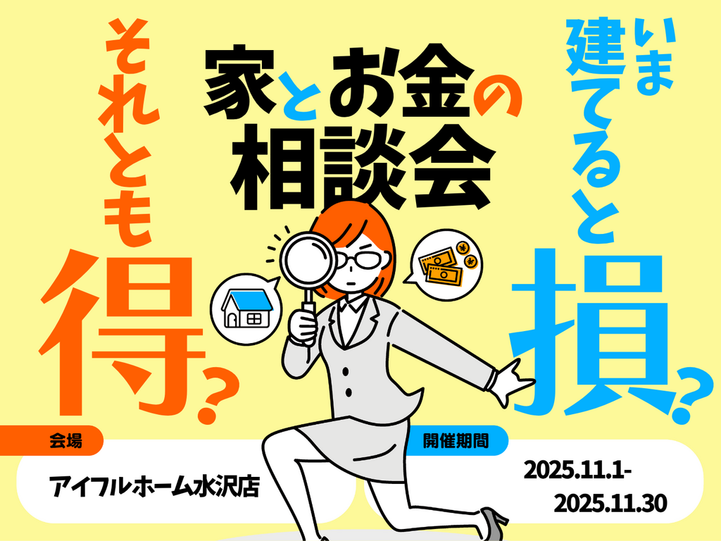 | タイトル | 【水沢店】今建てると損?それとも得?家とお金の相談会 |