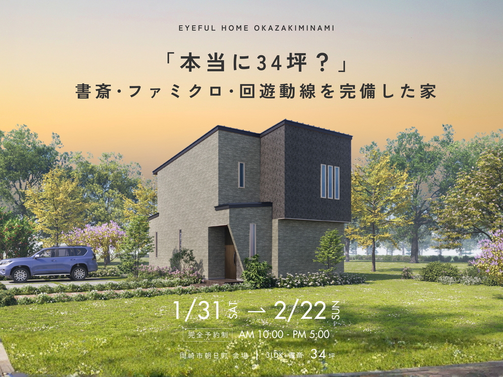 | タイトル | 【岡崎市朝日町会場】「本当に34坪?」書斎・ファミクロ・回遊動線を完備した家《完成見学会》 |