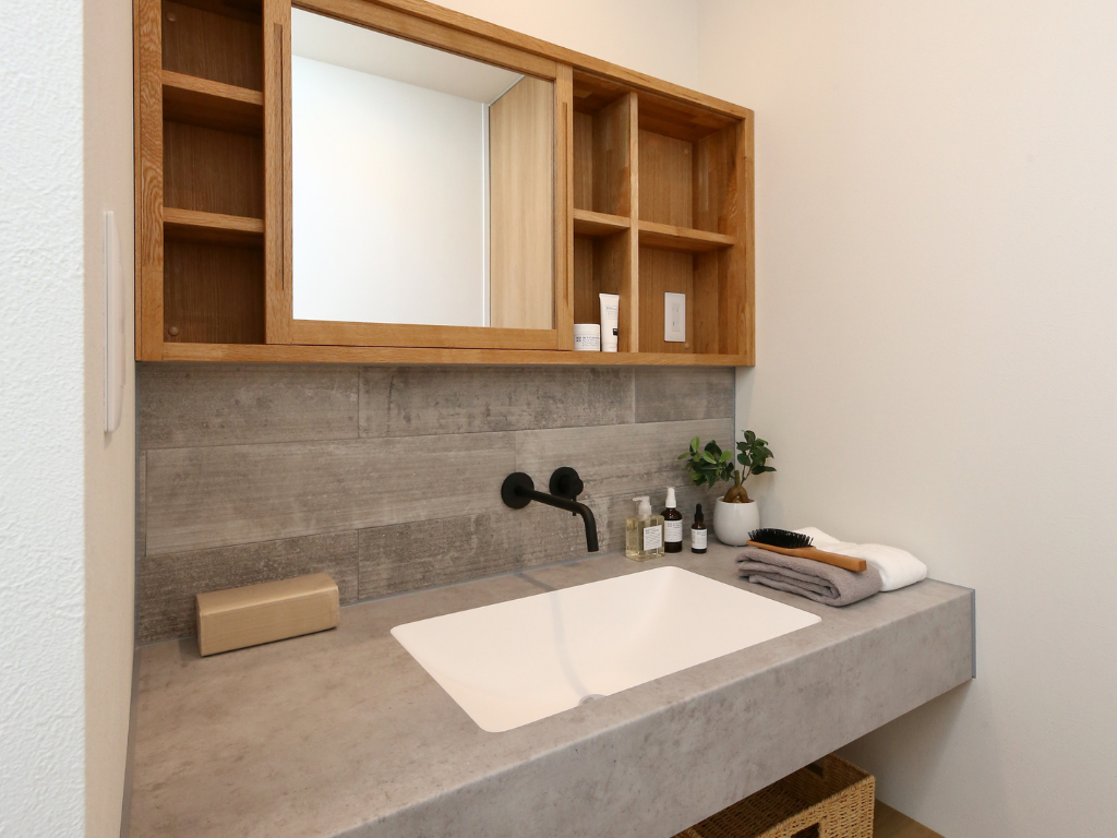 造作洗面台は家の雰囲気に合わせたデザインや、施工場所に合わせた大きさや幅のものが自由に作れるので非常に人気です。