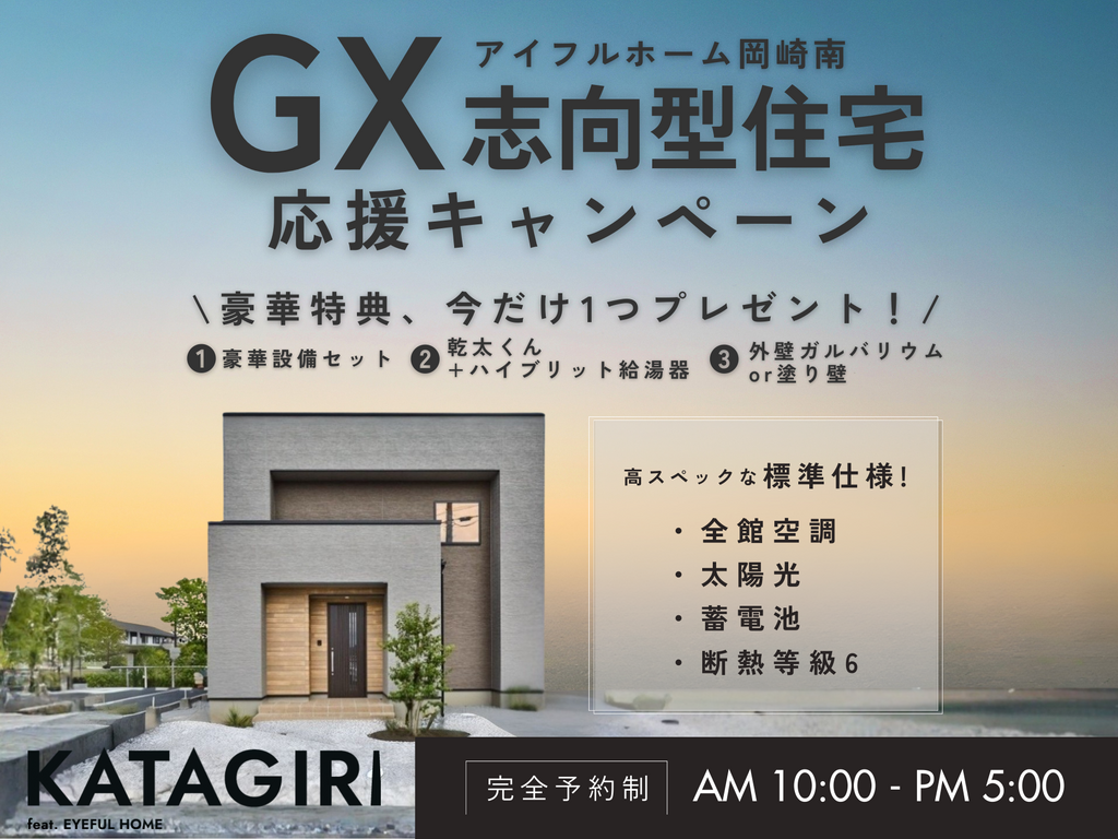 | タイトル | 【迷ったらコチラ!】アイフルホーム岡崎南店 家づくり相談会《GX志向型住宅応援キャンペーン開催中》 |