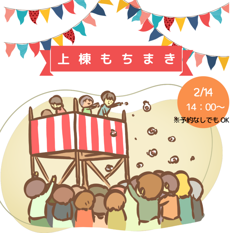 構造見学会開催中、午後2時より上棟餅まきを行います。