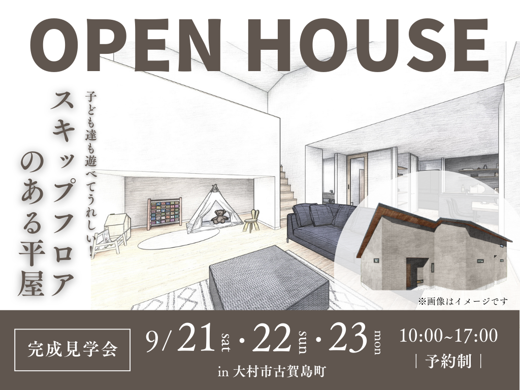 | タイトル | 《大村市古賀島町》子どもも嬉しい!スキップフロアのある平屋★完成見学会 |