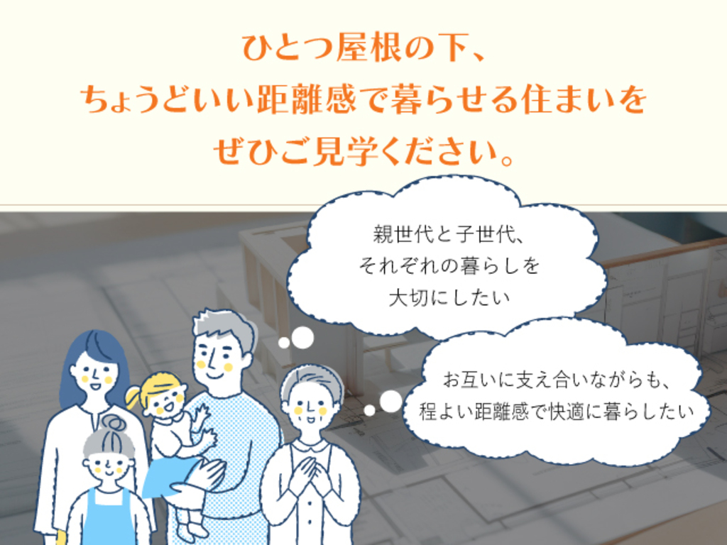 “ひとつ屋根の下、ちょうどいい距離感で暮らせる住まい”を、ぜひご見学ください。
