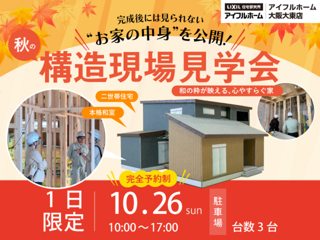 アイフルホーム大阪大東店では、「構造現場見学会」を通して完成してからでは見ることができないお家の構造のすべてをお見せします!