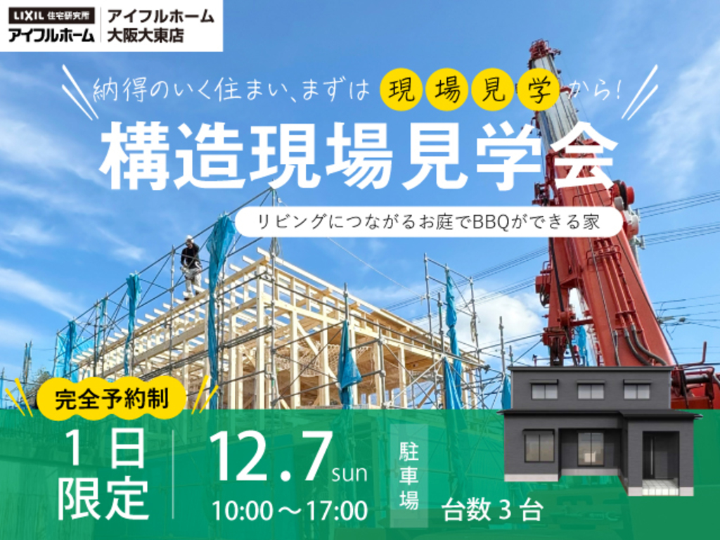 アイフルホーム大阪大東店では、「構造現場見学会」を通して完成してからでは見ることができないお家の構造のすべてをお見せします!