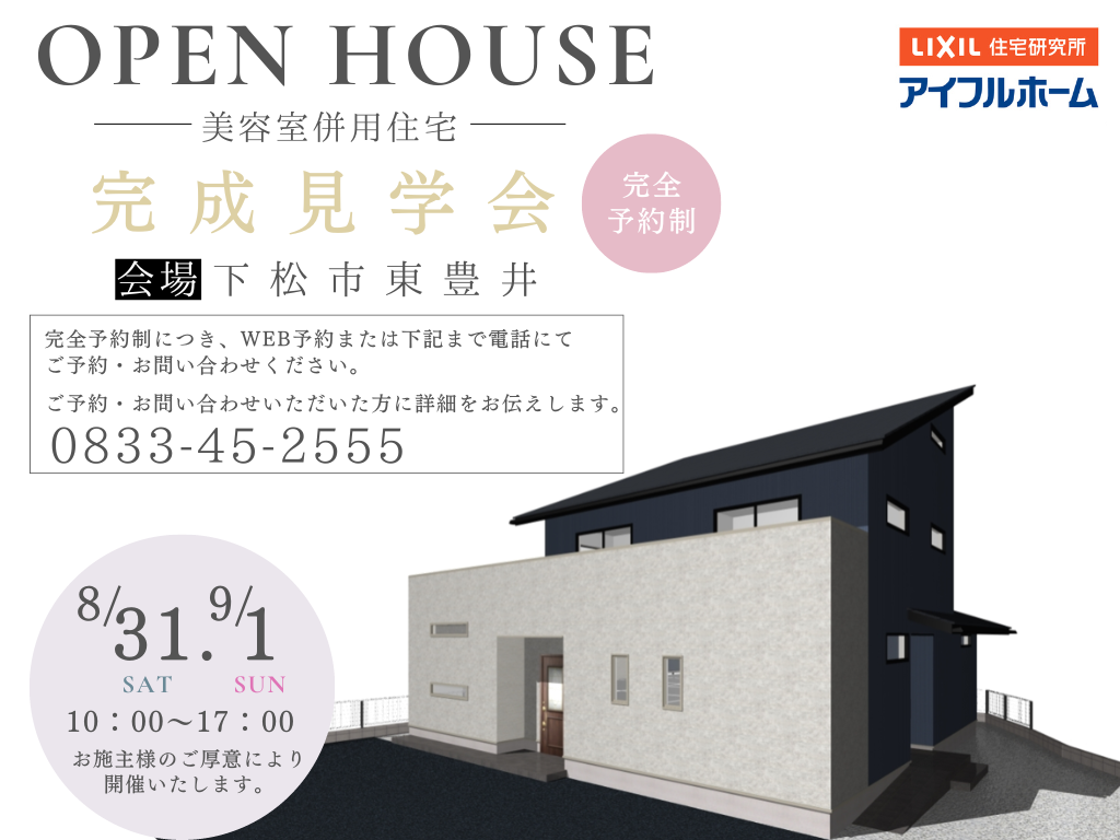 | タイトル | 美容院併用住宅完成見学会【予約制】 |