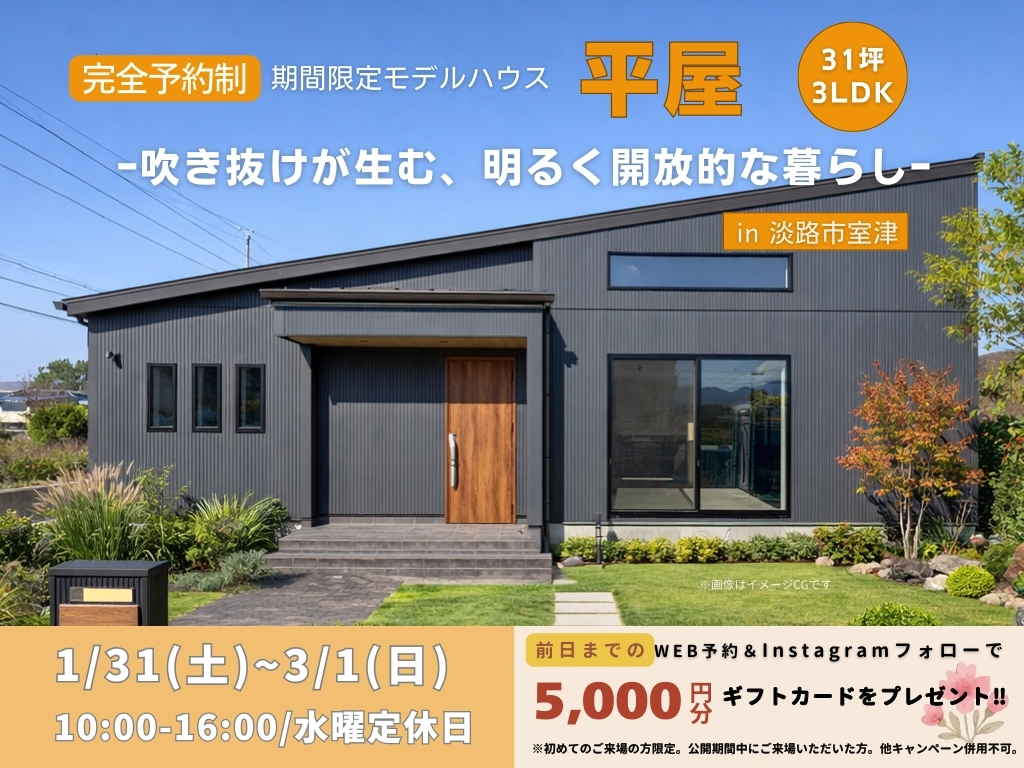 淡路市室津に31坪の期間限定平屋モデルハウスが完成しました!