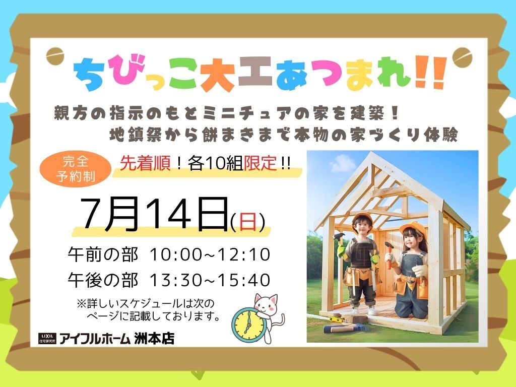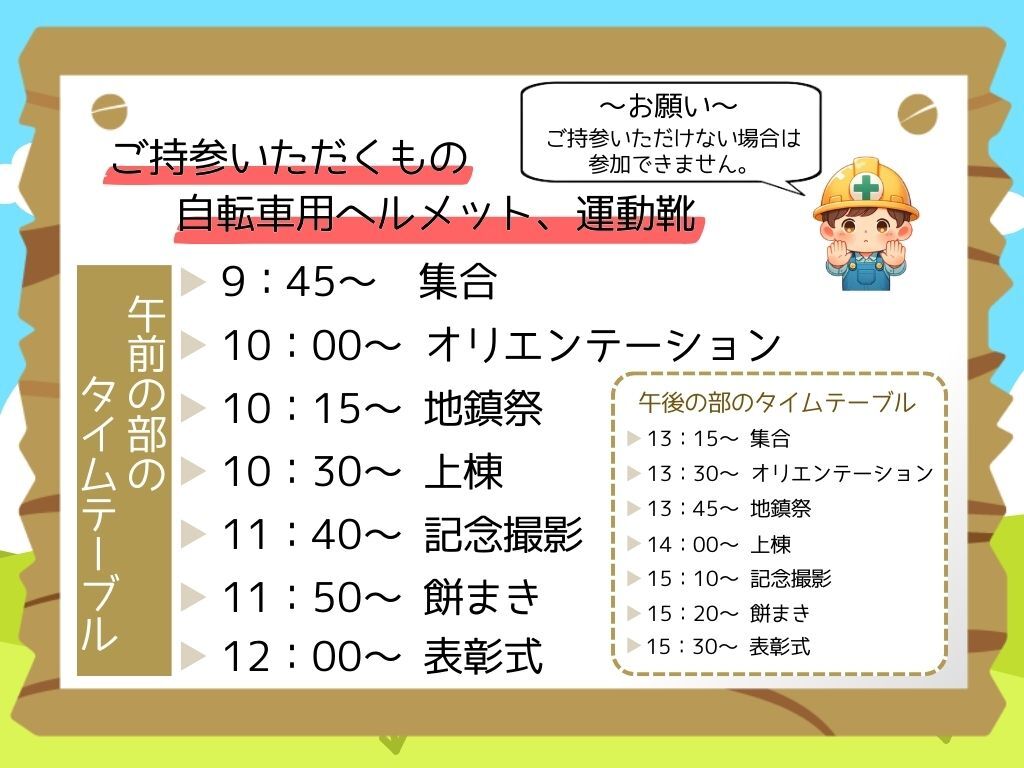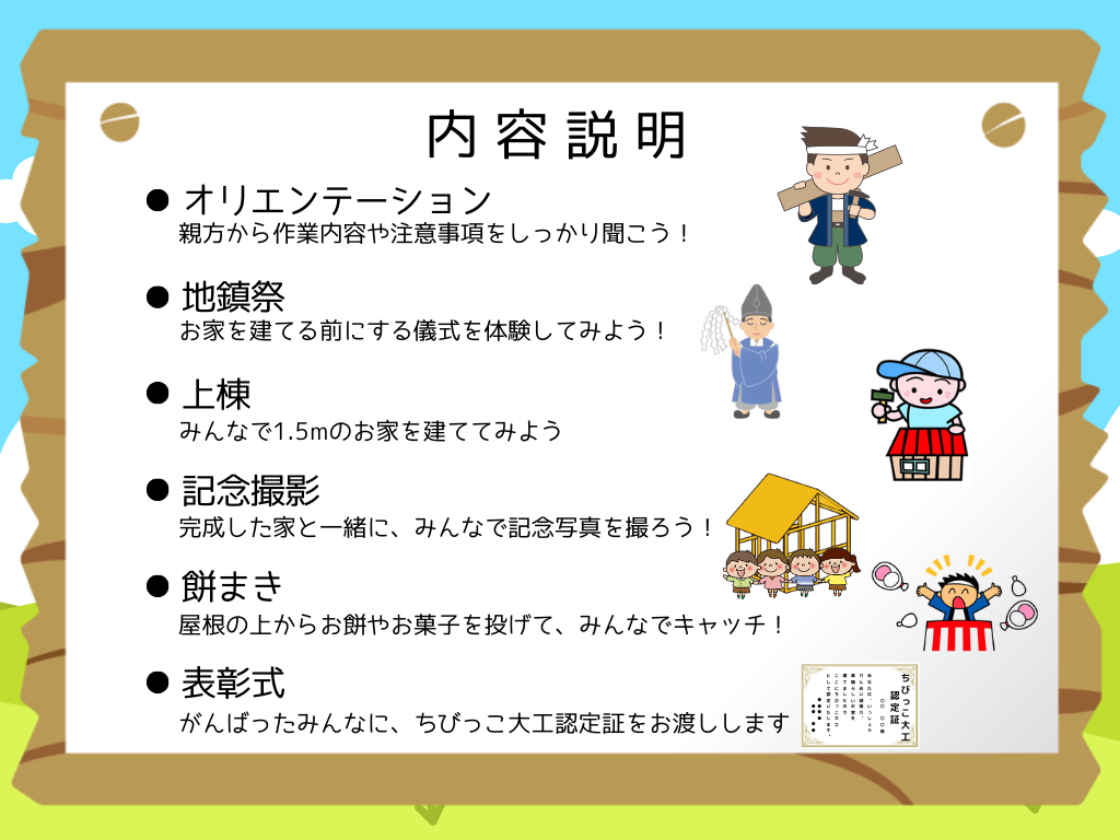 | タイトル | 【アイフルホーム洲本店】 ちびっこ大工あつまれ‼地鎮祭から餅まきまでの本物の家づくり体験 |