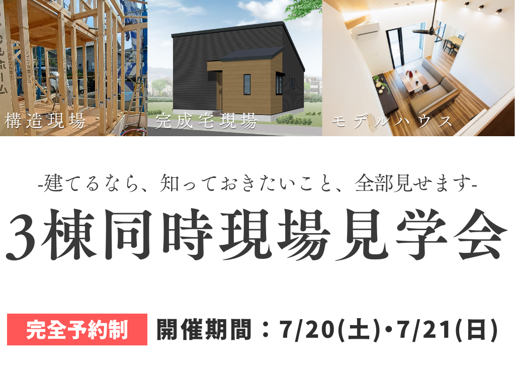 | タイトル | 【完全予約制】3棟同時現場見学会🏠✨ |