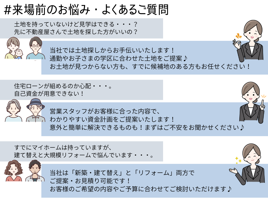 ですが、お客様に理想の家を叶えて頂くため、一生懸命親身にお話しをお伺いさせて頂きますので、是非お気軽に相談会にお越しください。
