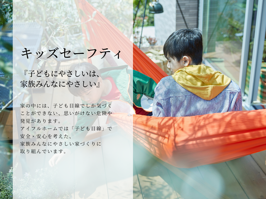アイフルホームでは「子ども目線」で安全・安心を考えた、家族みんなにやさしい家づくりに取り組んでいます。