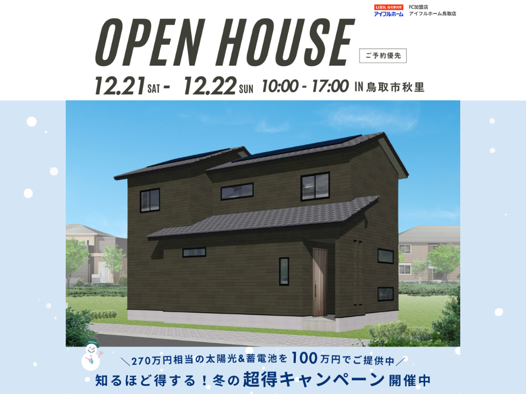 | タイトル | 【鳥取市|完成見学会】家族も友人もゆったり過ごせるLDK+小上がり=22帖の大空間※クオカード対象外 |