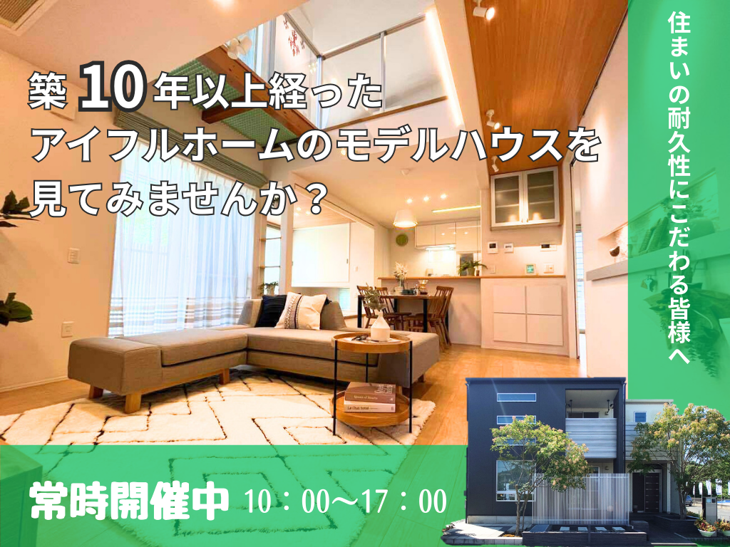 | タイトル | 【住まいの耐久性にこだわる皆様へ】築10年以上経ったアイフルホームモデルハウスを見てみませんか? |