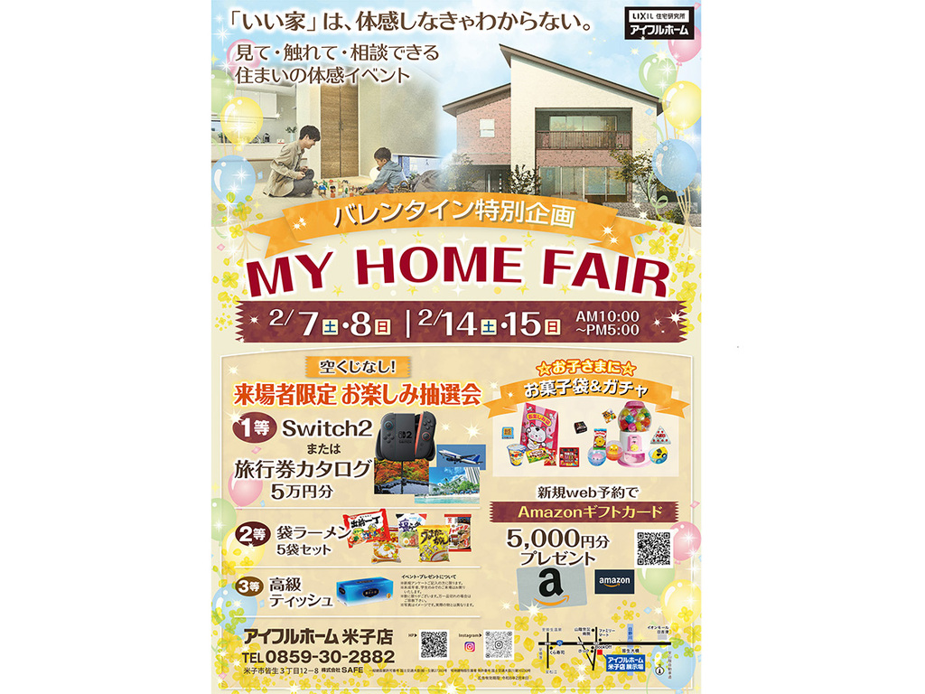 | タイトル | 2/7.8・2/14.15【米子店】🎀バレンタイン特別企画🎀MY HOME FAIR(住み心地体感) |