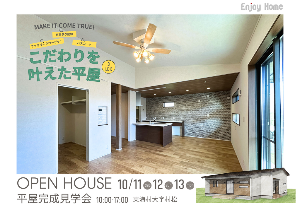 こだわりを叶えた平屋|完成見学会(東海村大字村松)