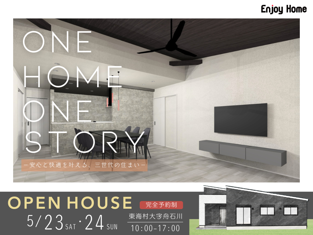 | タイトル | 三世代が暮らす平屋|完成見学会・東海村(完全予約制) |