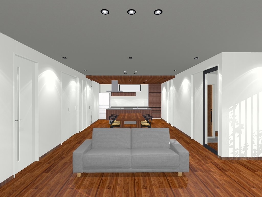 テクノストラクチャー工法によって実現した柱のない大空間が特徴で、約34畳の広々としたLDKは開放感と心地よさを兼ね備えています。