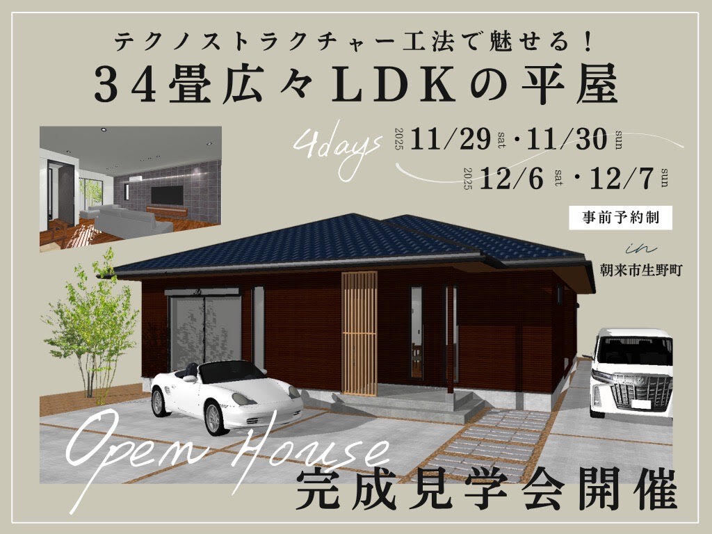 | タイトル | テクノストラクチャー工法で魅せる!34畳広々LDKの平屋 完成見学会 |