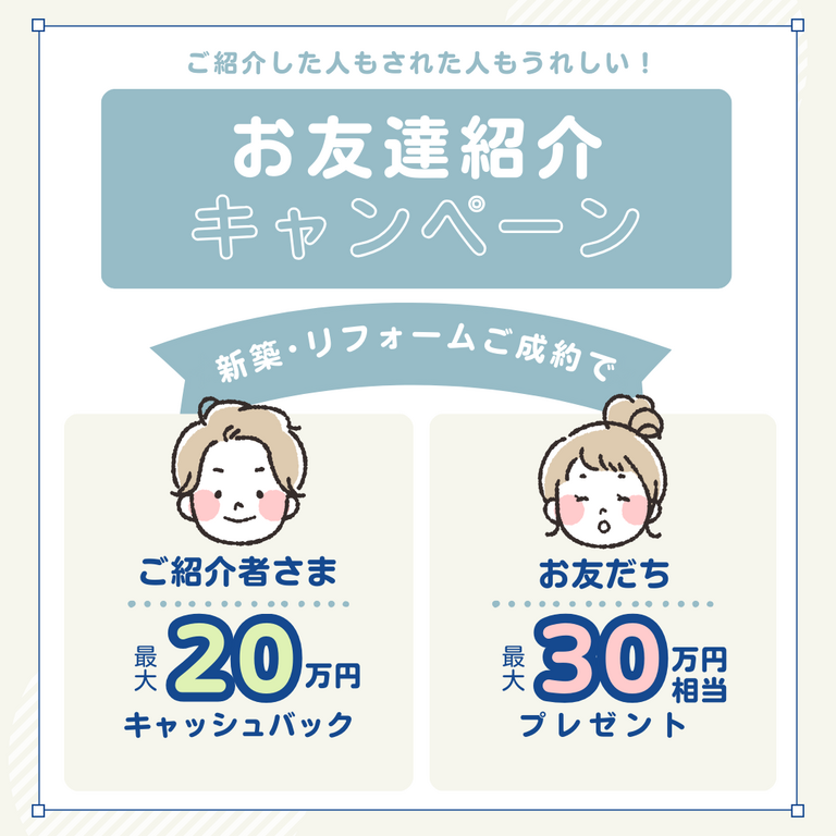 ■ご紹介者様への特典:現金最大20万円(請負金額(税別)の1%)
