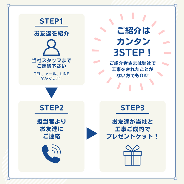 ③お友達が工事ご成約で双方プレゼント🎁ゲット!