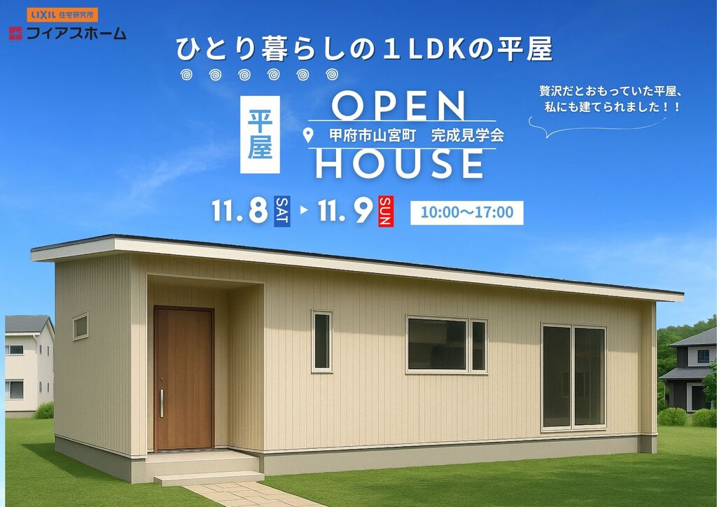 【平屋】11/8(土)・11/9(日) 平屋完成見学会 IN 甲府市山宮町
