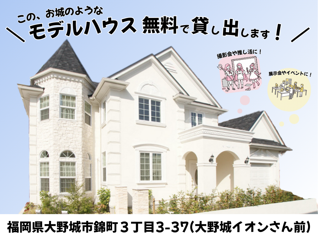 | タイトル | 撮影会・推し活・展示会に!お城のようなモデルハウスを「無料」でレンタルしませんか? |