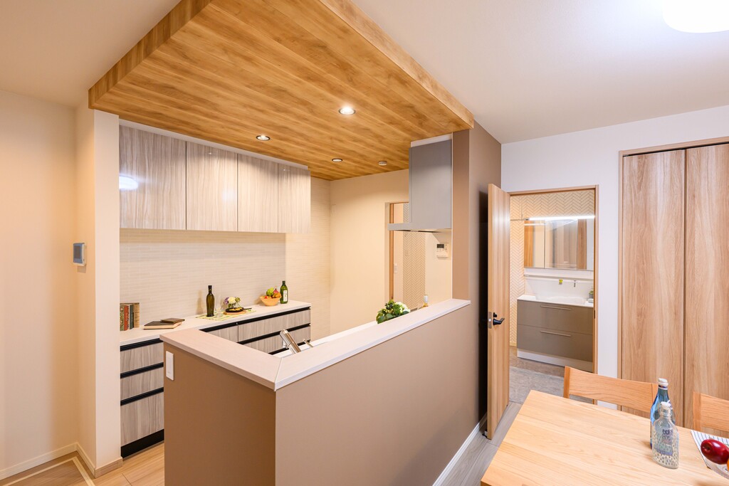敷地形状を活かした、個性的な空間に仕上げたLDK。