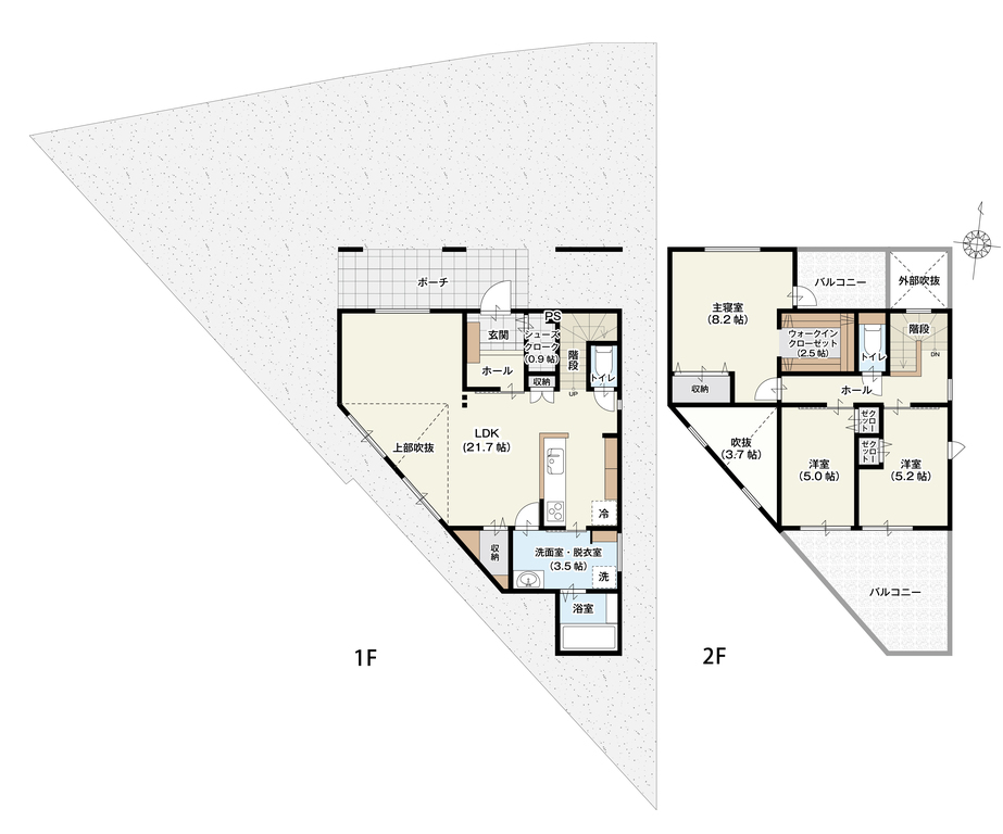 主寝室につながるバルコニーと、2つ子供部屋(洋室)からつながるバルコニーをご用意しました。