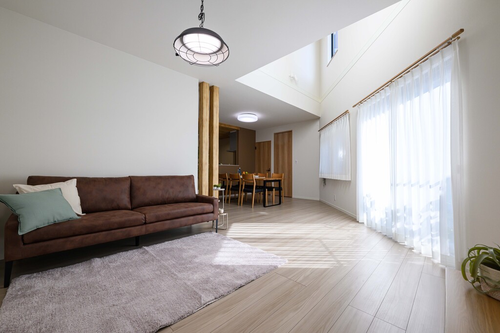 大きな窓と、吹抜けで解放感抜群の明るいLDKになっています。