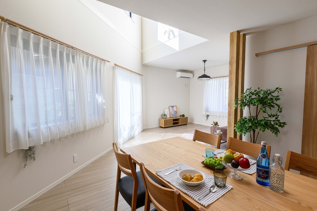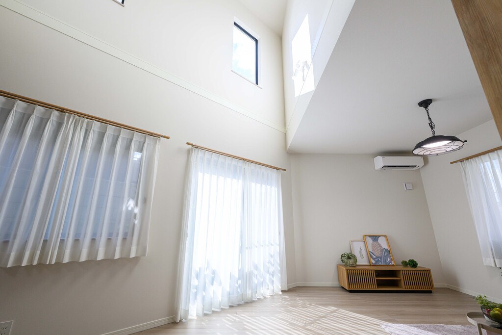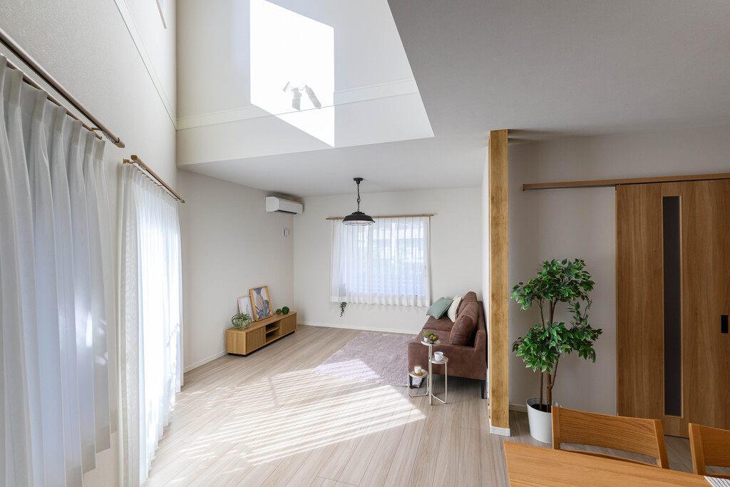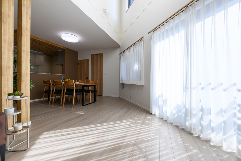 大きな窓と、吹抜けで解放感抜群の明るいLDKになっています。