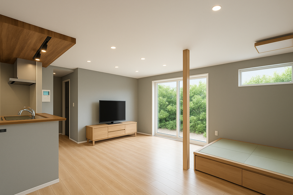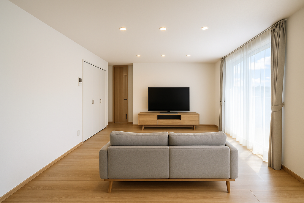 大きな窓から差し込む光が、毎日の景色を明るくしてくれる住まいです。